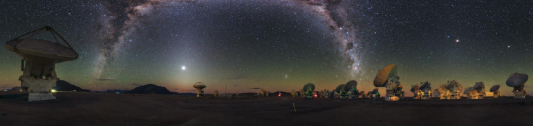 阿塔卡馬大型毫米波/亞毫米波陣列由54座12米口徑天線和12座7米口徑天線組成陣列協(xié)同工作,實(shí)現(xiàn)毫米波至太赫茲(1THz)的觀測。